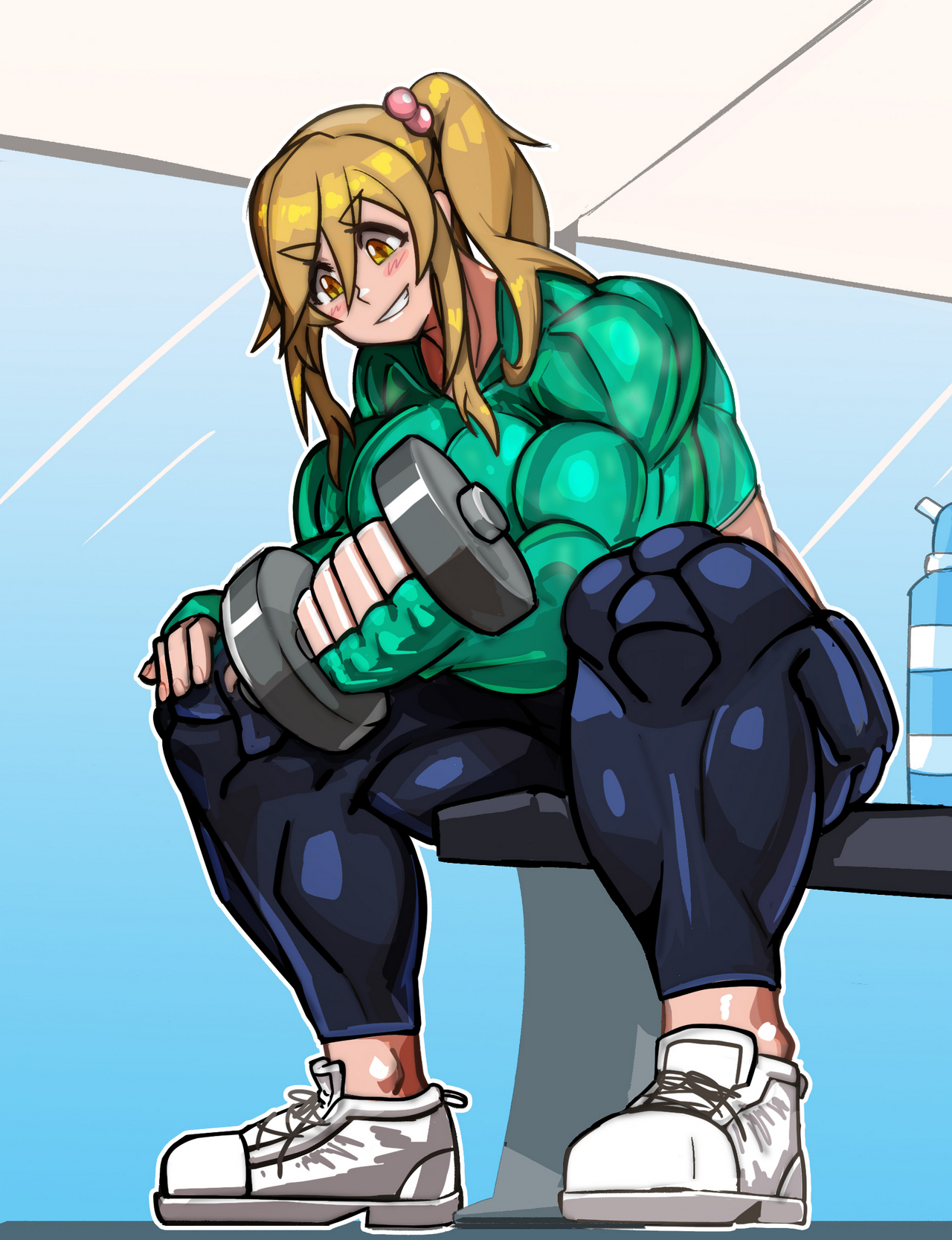 덤벨 트레이닝하고 있다는 콘셉트입니다. 의상은 소셜 미디에서 본 의상을 어레인지했는데 나쁘지 않네요.