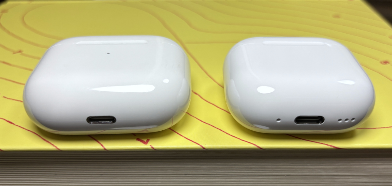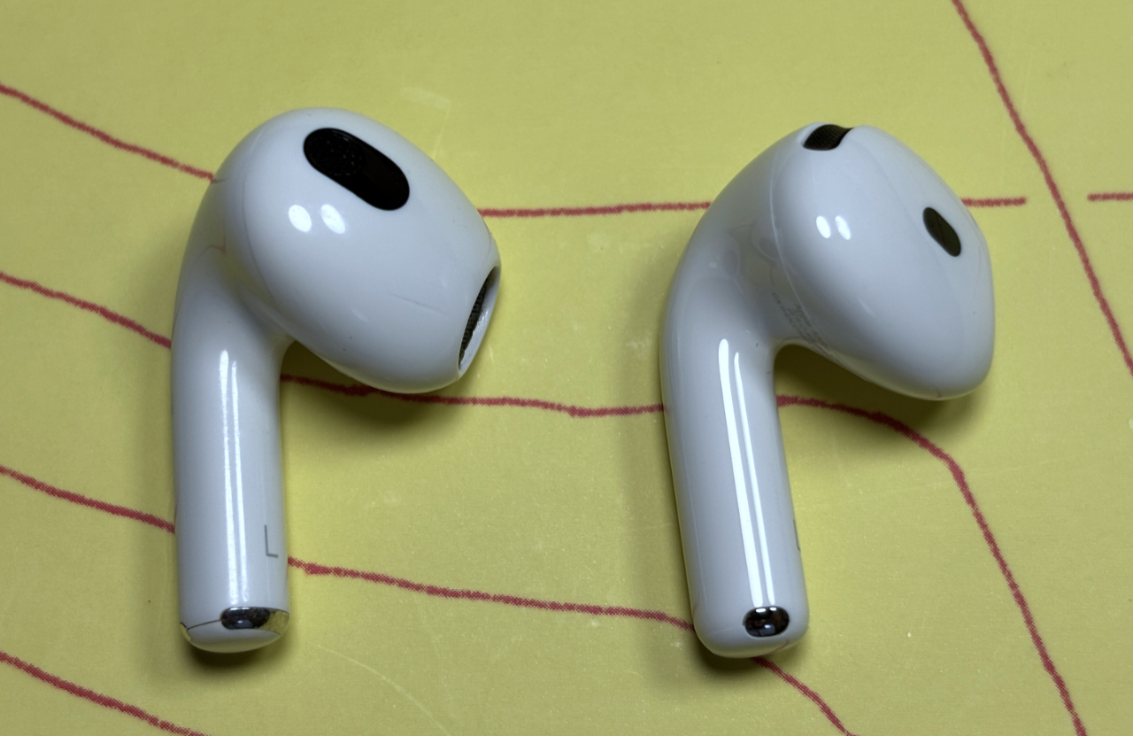 개별 이어폰 유닛은 타공 위치나 충전 연결부가 달라졌지만 겉보기 크기는 비슷합니다. 착용감은 3세대 쪽에 가깝지만 완전히 같지는 않은데, 1~2세대 대비 3세대 모양이 귀에 안 맞다고 했던 분이라면 4세대도 별로라고 생각할 듯 하겠네요 (저는 양 쪽 다 괜찮은 쪽입니다).